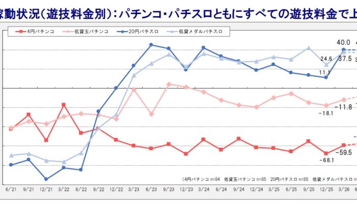 パチンコ景況DI調査 全般的業況は±0まで回復 稼働はパチンコ・パチスロで明暗分かれる