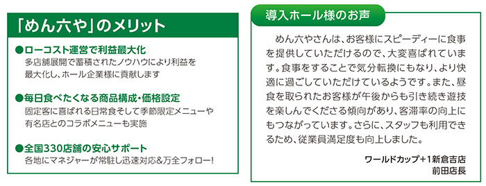 日本ヒュウマップが全国で330店を営業する『めん六や』は、パチンコホール併設型飲食店ならではの運営方法を確立しています。