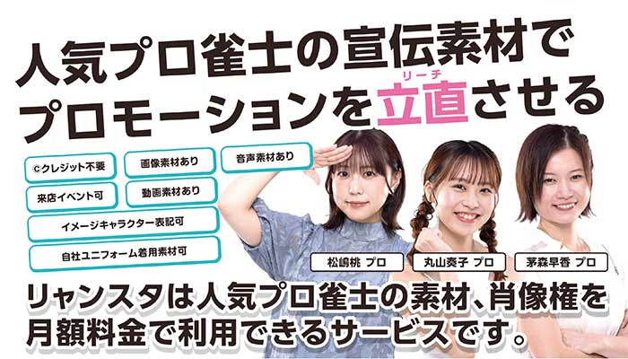 そこで生まれたのが「リャンスタ」です。パチンコホールにとっては、プロ雀士の肖像権を活用した独自のクリエイティブ展開ができ、また、プロ雀士にとっては、新たな収入源と活躍の場が広がる可能性があります。パチンコホールでの露出により、雀士自身の認知度向上にも繋がる可能性もあるのではないでしょうか。