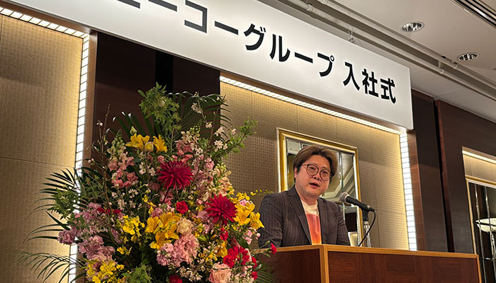 挨拶の中で金海社長は、「常に変化し続ける市場環境にあって新しい価値を生み出すには挑戦する気持ちを持ち続けることが何より大切です。また、同期入社は互いに支え合い、知恵を出し合い、ともに成長する貴重な存在です。挑戦への想いを高め合ってほしいと思います」とエールを贈った。