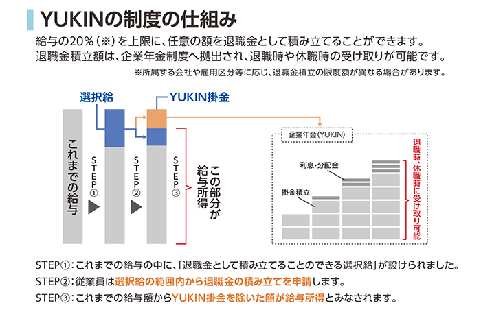 金融教育といっても、従業員に毎月セミナーを開く必要はありません。一番わかりやすく効果的なのは「企業年金制度を導入すること」です。たとえば、私たちステラパートナーが運営する、『YUKIN(ゆうきん)』は遊技業界に特化して設計された企業年金制度です。毎月一定額を企業と従業員が拠出し、一般勘定商品を活用した元本保証型の商品で運用されるため、リスクを負うことなく着実に資産を増やすことができます。『YUKIN』に加入することで、従業員は「資産形成のしくみ」「税金の仕組み」「社会保険料が決まる仕組み」を自然と理解できるのです。