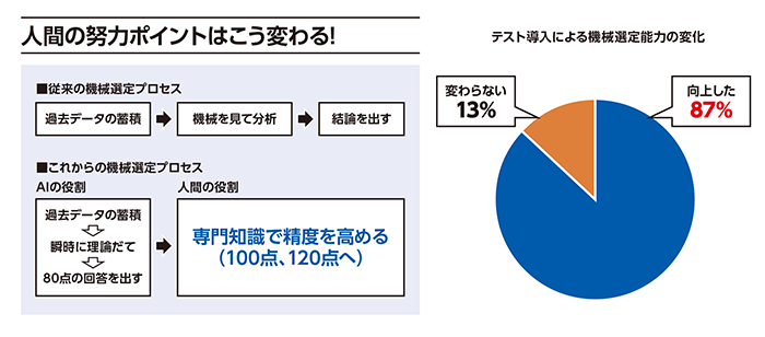 テスト導入企業の9割近くが「機械選定力が向上」と回答