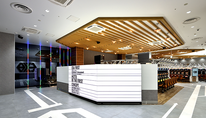 柴﨑 坂井田建築設計さんはメンテナンスのしやすさ、従業員にとっての使いやすさを考慮してくれました。それに加えて、部分的な改装への対応のしやすさを計算していますね。部分的な改装は、遊技機トレンドの変化などによって数年後に必要になると予想できます。正解なんてものはないんですが、いったん「これが正解かもしれない」というものを作らなきゃならない。けど、それで終わりではなく、その後も正解を模索し続けなければなりません。ですから、「大掛かりな工事をせずに変化させる」ということを前提とした店舗設計に仕上がっています。そういう意味で『EXA FIRST』は、いまのところ正解と言えるでしょう。