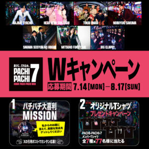 応募期間は7月14日から8月17日まで。優秀者には最大5万円分の『えらべるPay』と、PACHI-PACHI-7の各メンバーデザイン+限定オールスターTシャツ(計8枚)が贈呈される。3つの大喜利に何度でも参加できる点も本企画の特長だ。