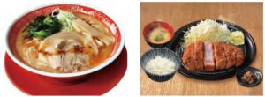 〔左〕人気No.1の味噌らーめんは、お客様の4人に1人がお選びいただくほど。世代を超えた安心感が支持されている。〔右〕定食メニューの中でも人気の「厚切り上とんかつ定食」は、厳選した三元豚を使用しています。
