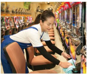 A 一番印象的だったのは、従業員一人一人を丁寧に指導している点です。日本ヒュウマップでは作業グループごとにトレーナーの指導があり、しっかりとしたフォロー体制に基づいた作業品質の高さを実感しました。新しいスタッフが多いなかでも皆さん元気で雰囲気がとても良い。外部委託というよりも、店舗と一体になって取り組んでいる姿勢が感じられ、ご遊技してくださるお客様に対しても良い印象につながるはずです。清掃品質はもちろん、店舗を一緒に盛り上げていくパートナーという点で、とても信頼できる会社だと思います。