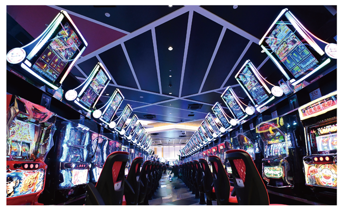 同店は600台あるパチスロコーナー全台にBXを設置。元々活況だったパチスロコーナーの視覚的な印象をさらに豪奢なものにする手を打った。