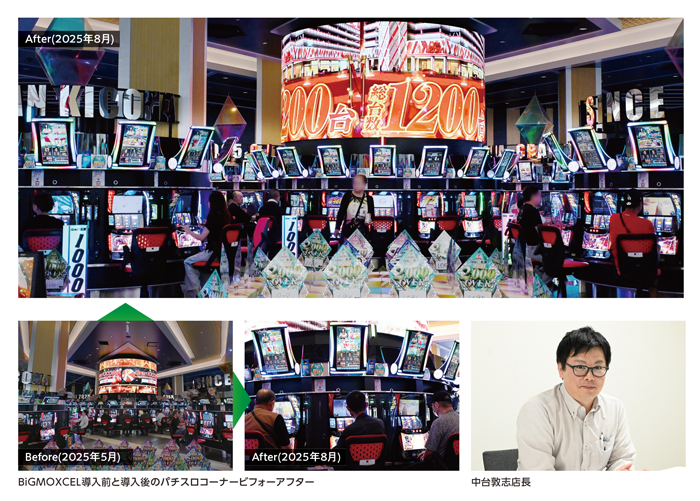 リニューアル直後はBX目当ての業界関係者の視察も少なくなかったようだ。そして普段はパチスロを遊ばないパチンコユーザーもパチスロコーナーへという回遊が生まれた。中台店長はその動きに可能性を感じたと言う。