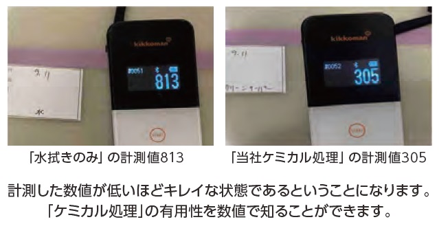 専用測定器で「汚れ度合い」を測定し、 数値で見える化を図ります。
