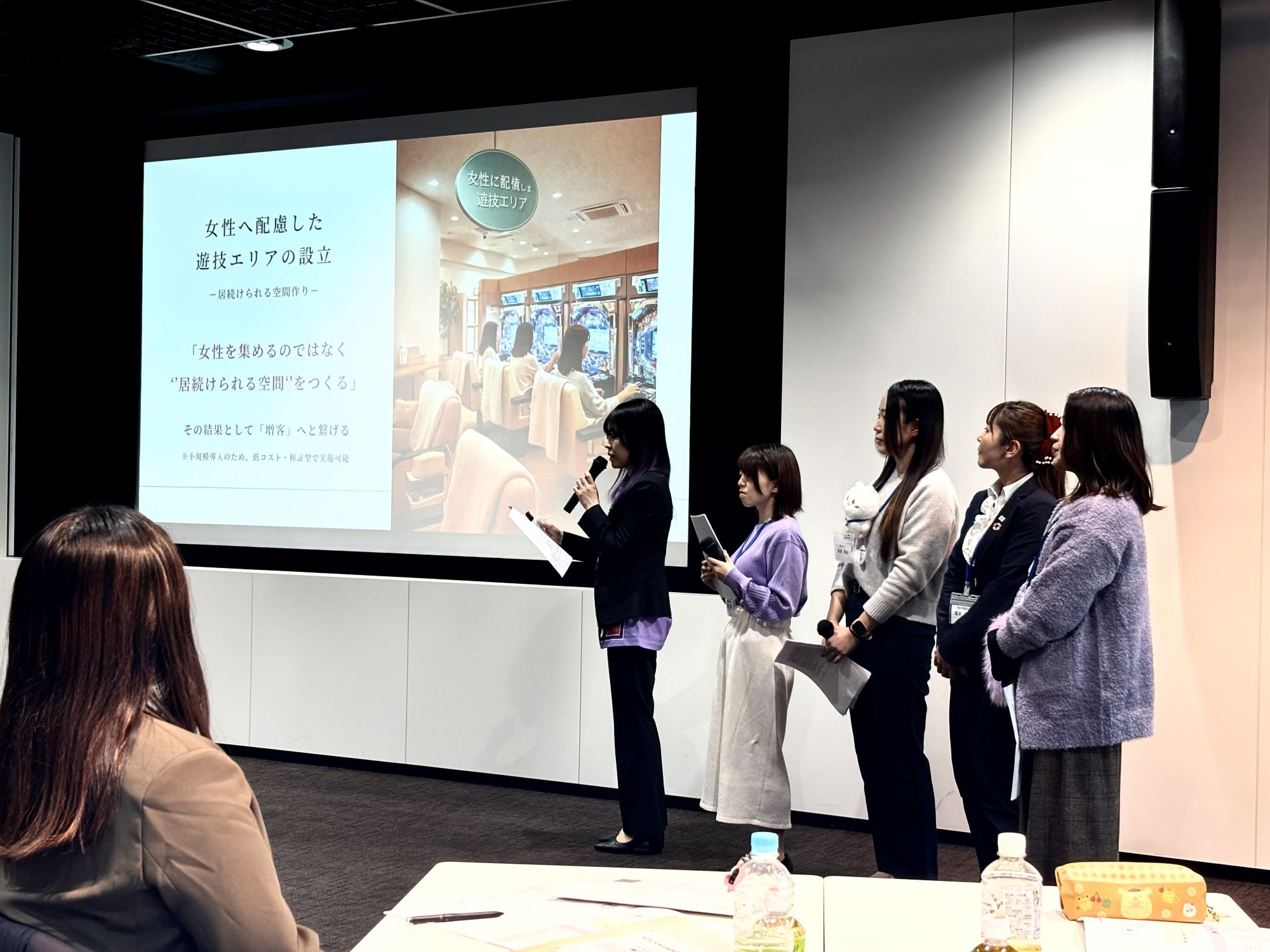 日本遊技関連事業協会(日遊協)は1月29日、都内で「令和7年度 女性活躍推進フォーラム in 東京」を開催した。本フォーラムは、ホール企業13社から参加した女性社員23人が4チームに分かれ、2025年9月から継続的にマーケティングセミナー受講やグループディスカッションを重ねてきた活動の集大成となる第5回目の会合。最終回となる今回は、各チームによる企画プレゼンテーションが行われた。