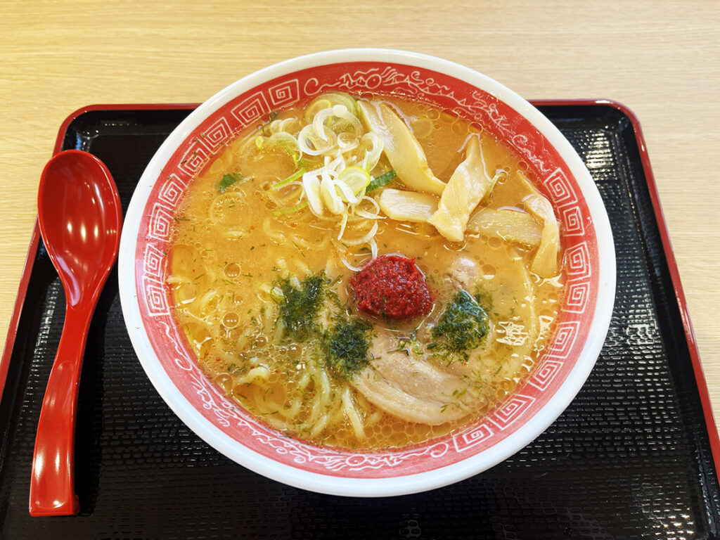 高橋店長のイチ押しは、唐辛子とニンニクにスパイスをブレンドした「赤玉」を中辛みそに溶け込ませて食べる『赤玉味噌らーめん』