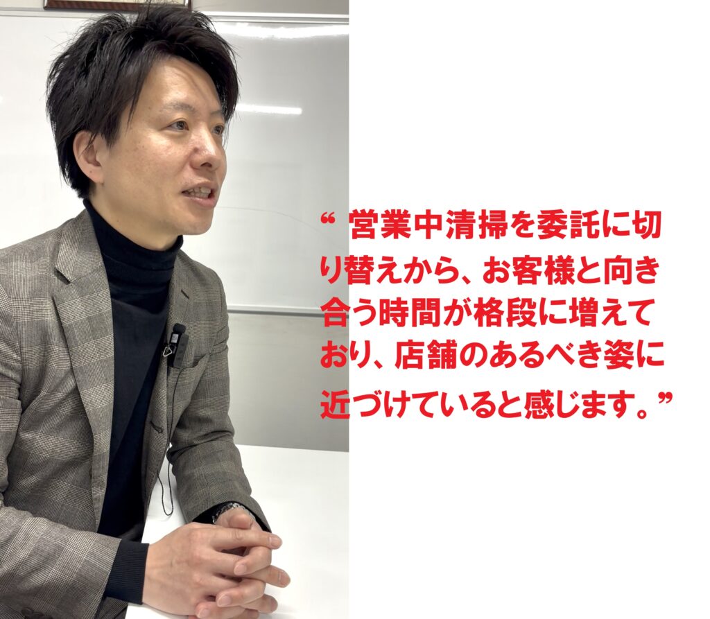 店舗責任者として大きく変わったと感じるのは、営業中清掃の委託によって、「スタッフがお客様と向き合う時間も格段に増えており、店舗のあるべき姿に近づけている」ことだと言う。