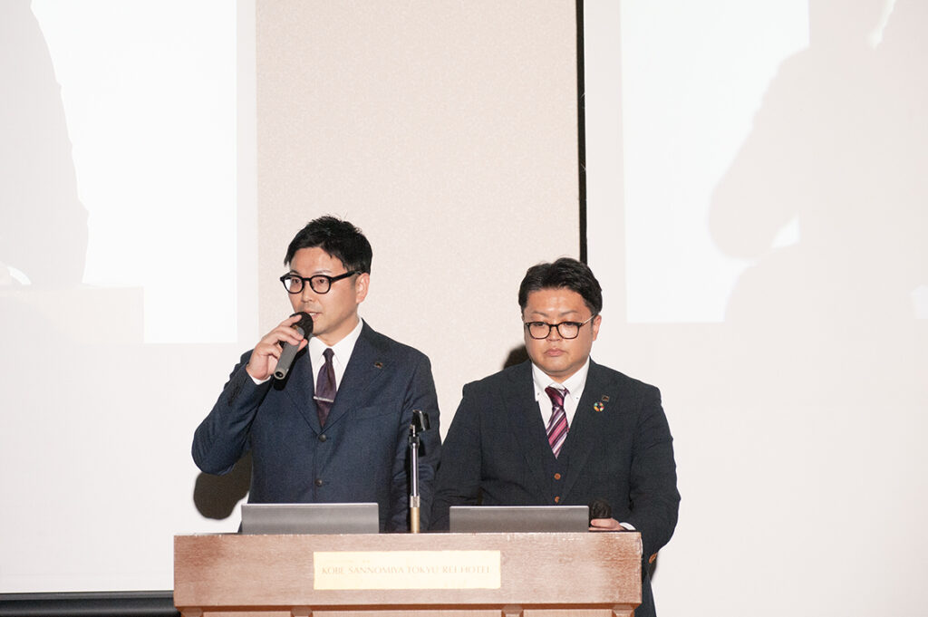 経営計画を説明したMILLION Neoの都築繁晴 営業部課長(左)と平成観光の谷藤洋介 営業部課長